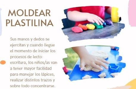 La motricidad fina ayuda al niño/a a tener destrezas, coordinación y precisión en movimientos finos estableciendo vÃnculos con el proceso de pre escritura.